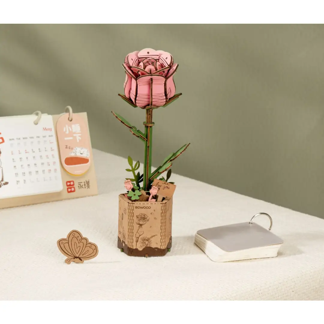 The Robotime Pink Rose 3D Wooden Puzzle is a beautifully crafted DIY kit that lets you build a delicate wooden flower. This intricately designed model features pre-colored petals, ensuring a vibrant and lasting display without fading.