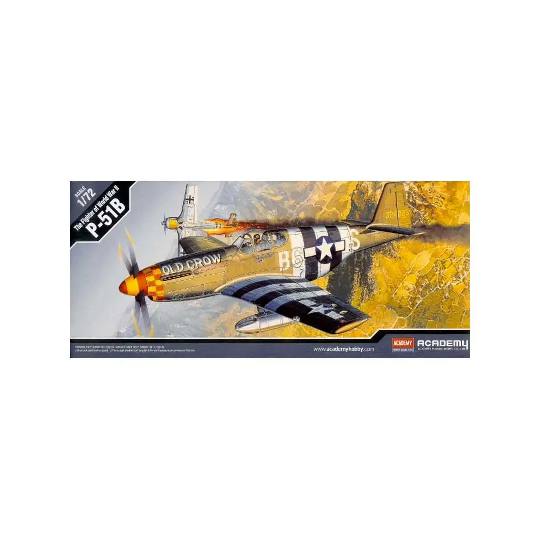 Academy P‑51B North American Mustang – 1/72 scale kit features engraved panel lines, detailed cockpit, canopy parts, and WWII USAAF decals. Requires assembly and painting. Perfect for aviation enthusiasts seeking realism, accuracy, and display versatility.