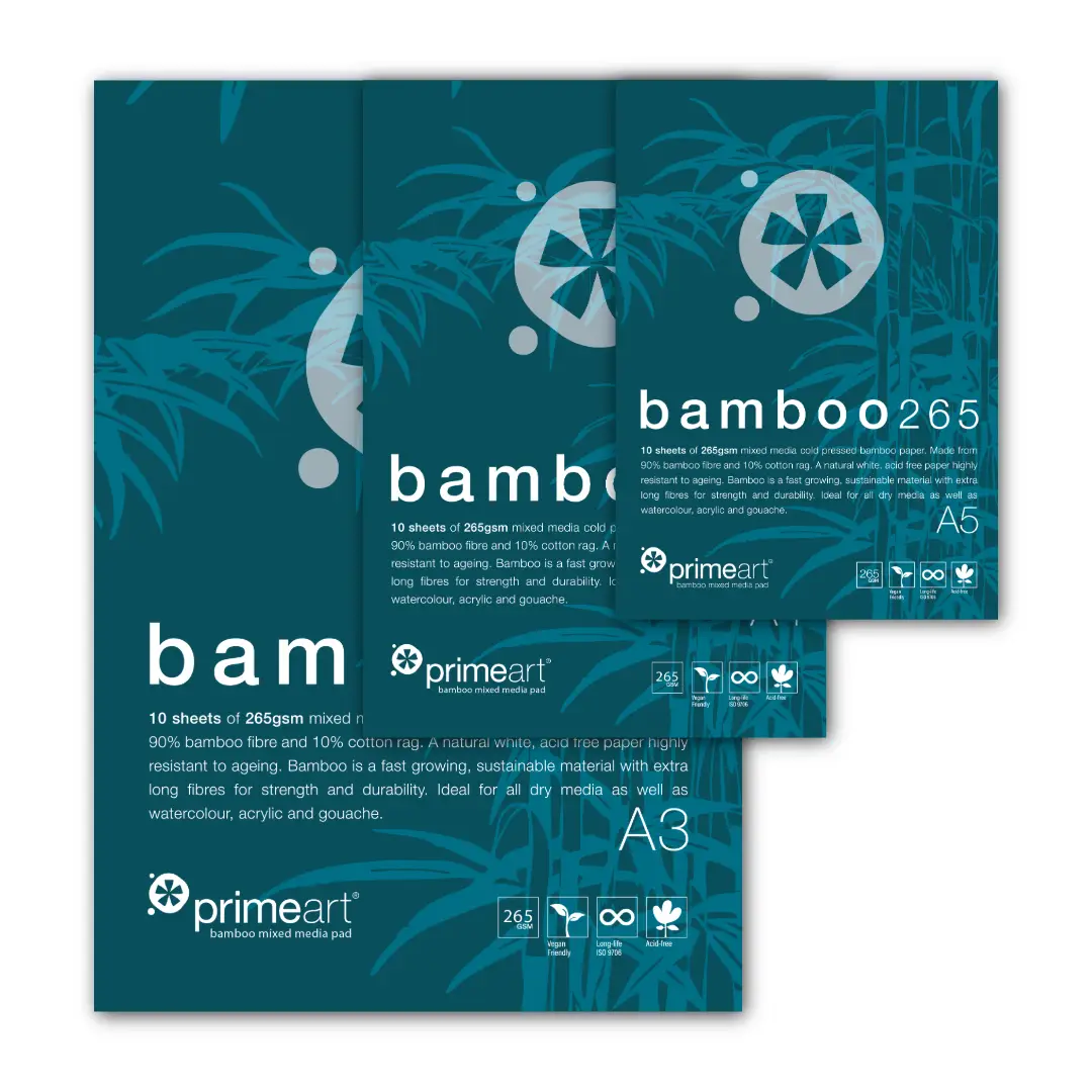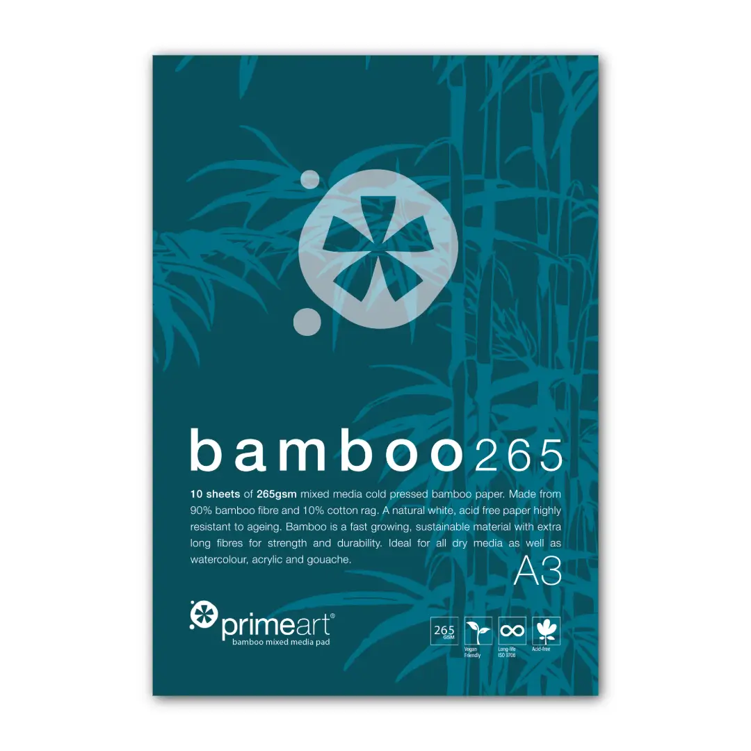 The Bamboo Pads by Prime Art are high-quality, sustainable art pads crafted from “Green” Hahnemühle bamboo paper. Each sheet is made with 90% bamboo fibre and 10% cotton rag, offering a natural white tone and a smooth matte surface that enhances colour vibrancy and contrast.