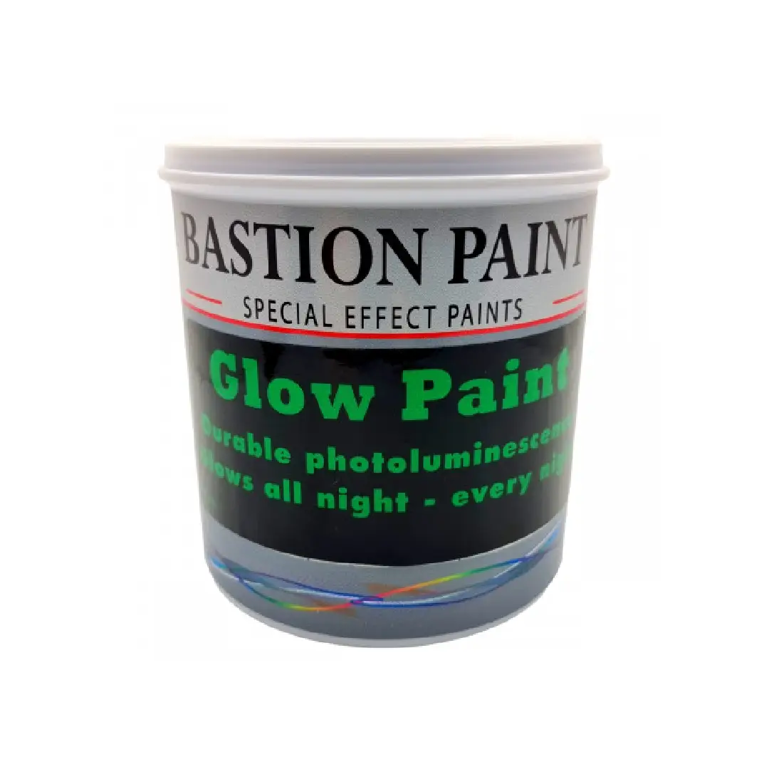 The Bastion Glow‑in‑the‑Dark Paint (Green) – 1L delivers the brightest glow for 12 hours. Durable, rechargeable, and versatile, it suits interior and exterior use, offering safety and decorative applications with a life expectancy of up to 20 years.