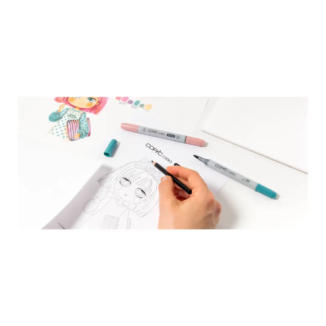 Additionally, Copic Ciao markers combine professional quality with beginner-friendly design. Because the barrel is smaller, you gain easier control. Furthermore, the super brush tip ensures smooth blending and shading, while the chiselled nib adds precision for textures and details. Equally important, the alcohol and dye based inks are expertly formulated, guaranteeing vibrant results.