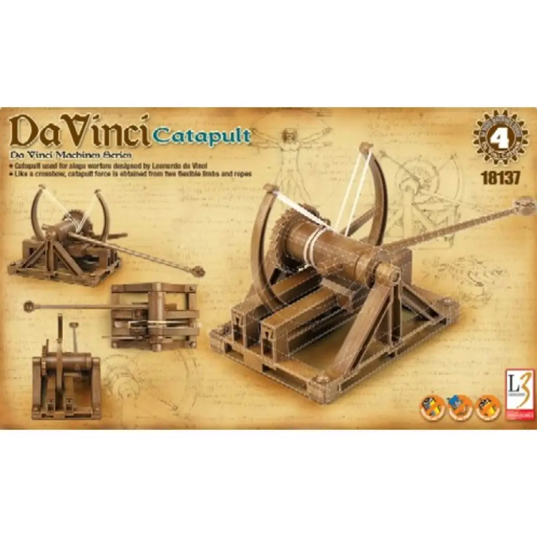 Build, learn, and admire the ingenuity of Leonardo da Vinci with this remarkable catapult. Transition seamlessly from assembly to display, and enjoy a timeless blend of history and science.