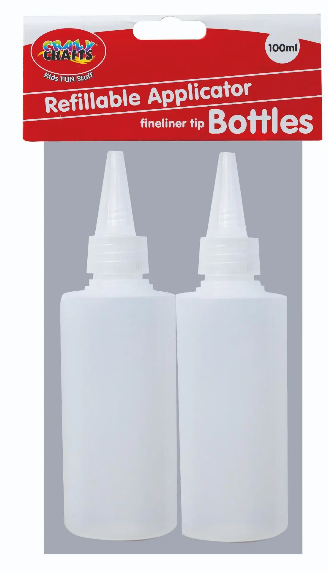 Crazy Crafts Empty Applicator Bottles offers empty applicator bottles with spout in a convenient 100ml size. These bottles suit artists, educators, and DIY enthusiasts.