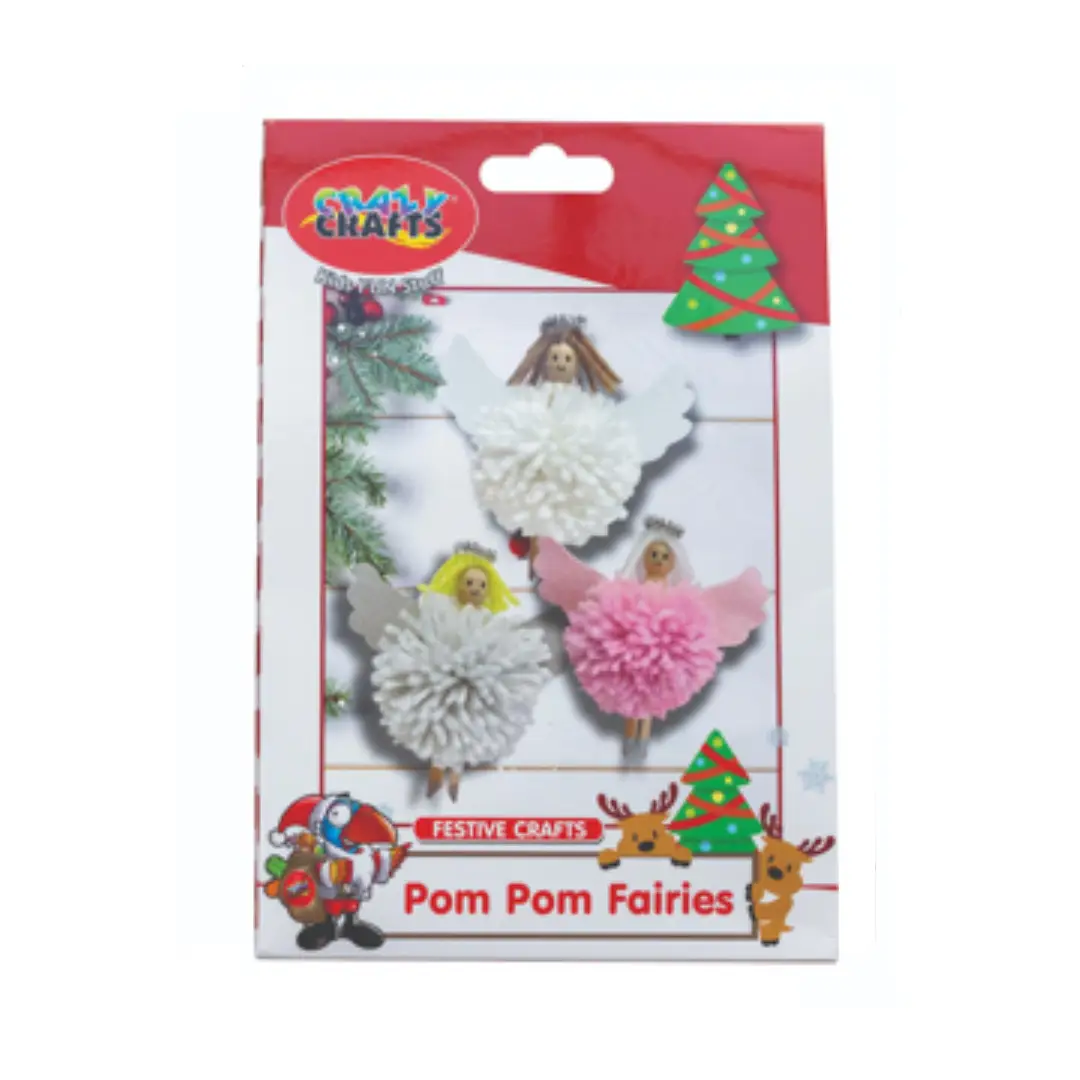 Celebrate creativity this season with Crazy Crafts Festive Pom Pom Fairies Kit. Packed with everything you need, this kit makes crafting magical festive decorations simple and fun. It contains 3 wooden pegs, assorted wool, pom pom makers, 2 felt tip pens, felt shapes, 1 chenille wire, double sided tape, and a full instruction sheet.