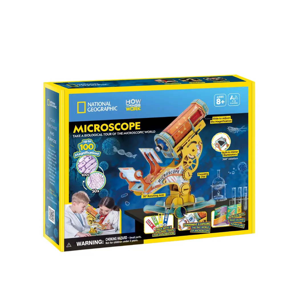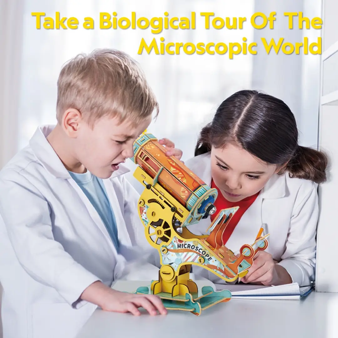 Explore the microscopic world with the National Geographic Microscope STEM Playset. Created by CubicFun and National Geographic, this hands-on kit makes science fun and accessible. First, kids build their own microscope using sturdy wooden and foam sheets. Then, they follow illustrated instructions to assemble each part with ease.