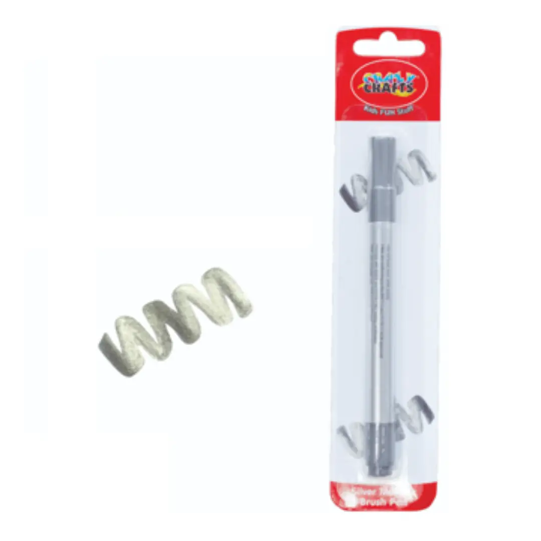 Crazy Crafts Silver Metallic Brush Pen features water based, low odour ink with a flexible brush tip. Perfect for calligraphy, crafts, and decoration, this pen delivers shimmering metallic detail with smooth strokes and quick drying results.