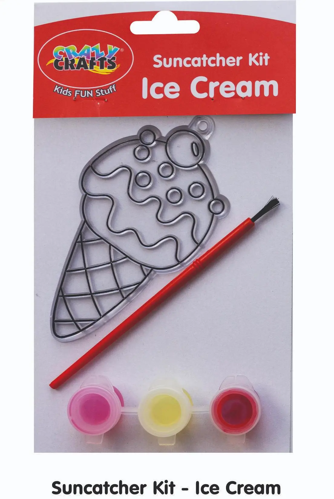 • Includes 1 ice cream cone suncatcher, 5 paints, and a brush
