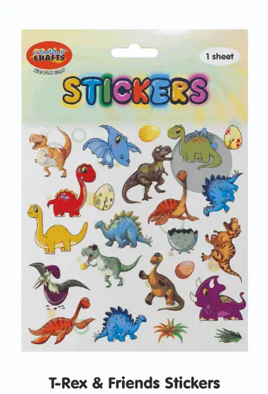T-Rex and Friends Stickers by Crazy Crafts transport kids to a prehistoric playground filled with friendly dinosaurs, erupting volcanoes, and fossil-inspired fun. These vibrant sticker sheets feature cartoon-style T-Rexes, Stegosauruses, Triceratops, and more—designed to delight young explorers and budding paleontologists.
