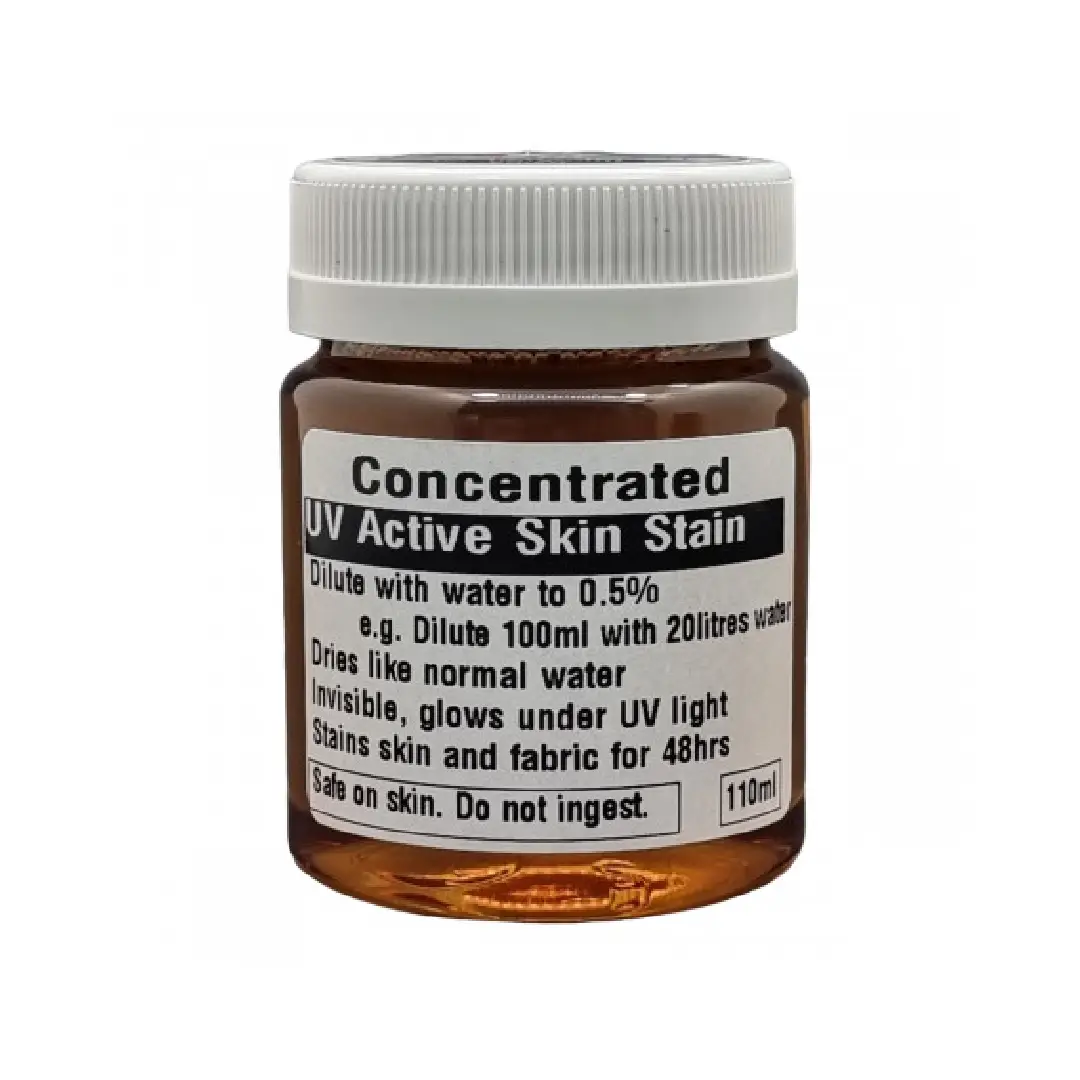 Enhance your projects with the UV Activate Skin Stain – Bastion. This concentrated solution creates invisible marks that glow bright bluish white under ultraviolet light. Moreover, when diluted correctly, the stain remains invisible in normal light yet highly visible under UV. Making it perfect for inspections and detection. Additionally, the stain lasts up to 48 hours on skin, even after repeated washing, ensuring reliable marking.