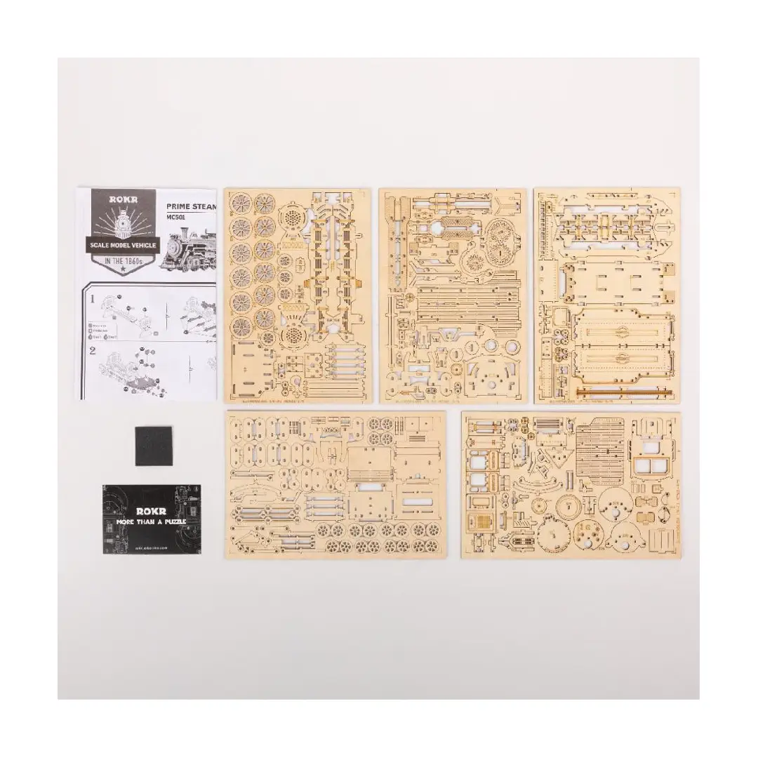 The Robotime Prime Steam Express Locomotive 3D Puzzle is a detailed scale model of a classic steam train from the 1860s. With 308 precision-cut wooden pieces, it offers an engaging DIY experience for train enthusiasts and puzzle lovers.